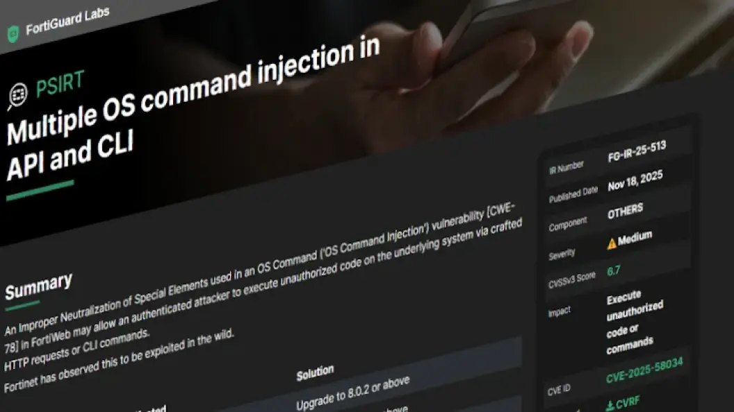 Fortinet warns of FortiWeb flaw CVE-2025-58034 exploited in the wild and issues urgent upgrade guidance.