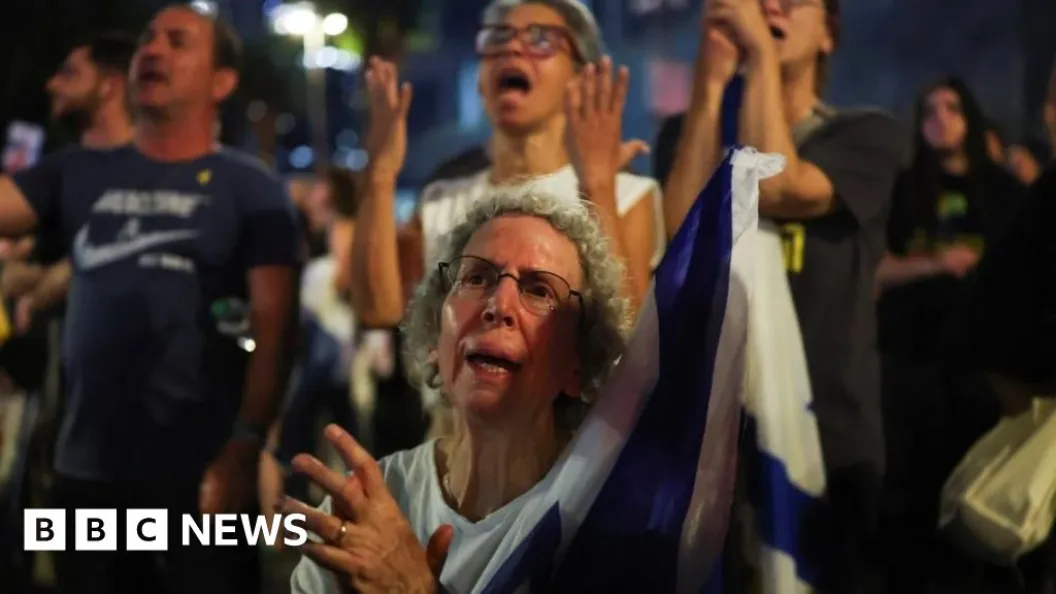 Hundreds of thousands gather in Tel Aviv as Palestinians continue to return to Gaza City after the Israeli withdrawal.