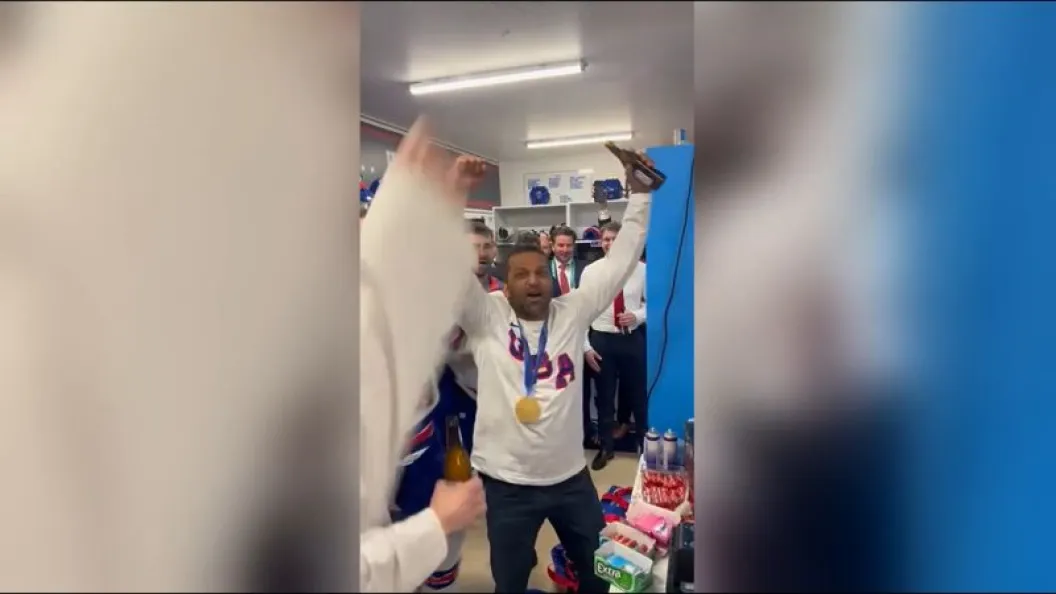 FBI Director Kash Patel celebrates with US men’s hockey team after Olympic win