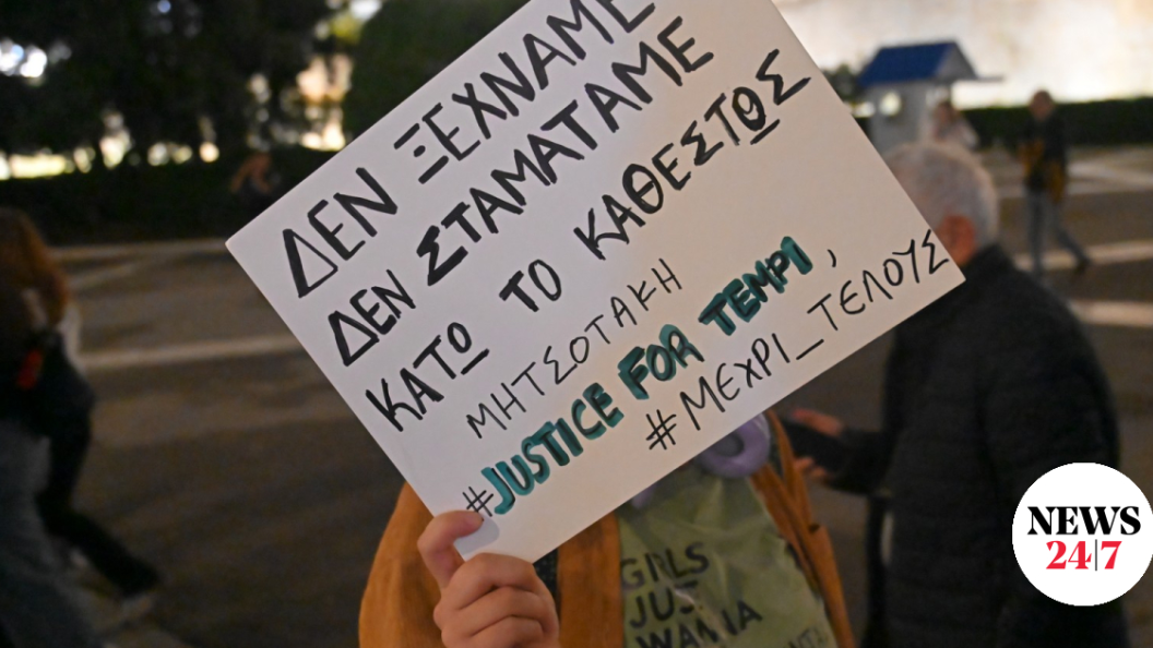 Με πλακάτ και συνθήματα πολίτες αλλά και συγγενείς θυμάτων της τραγωδίας των Τεμπών διαδηλώνουν στο Σύνταγμα κατά των κυβερνητικών εξαγγελιών για το μνημείο του Αγνώστου Στρατιώτη