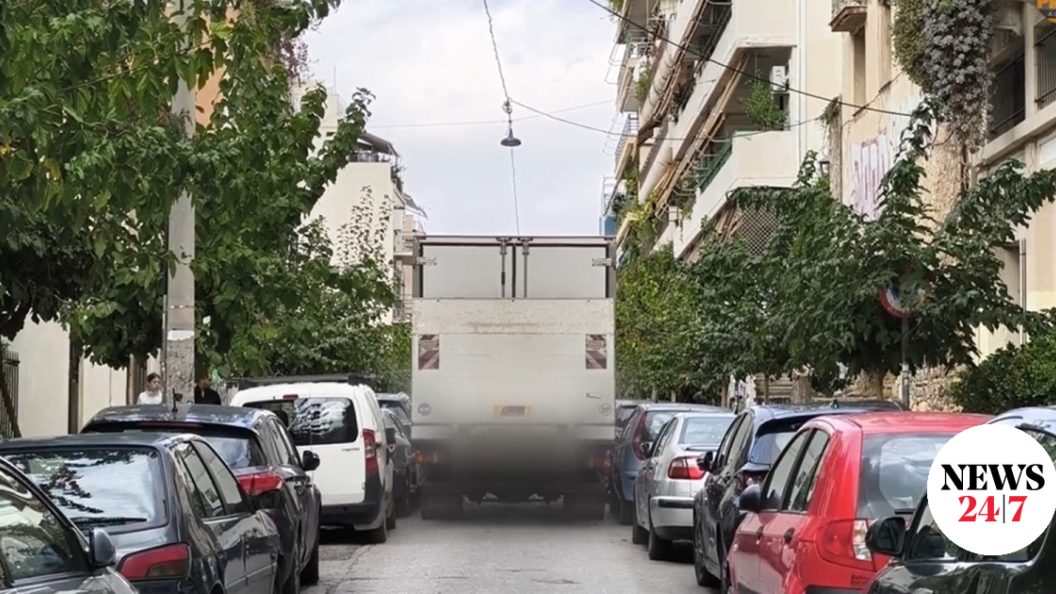 Φορτηγό “κόλλησε” μεταξύ των σταθμευμένων οχημάτων στην Καλλιδρομίου. Τουλάχιστον 9 αυτοκίνητα υπέστησαν ζημιές.