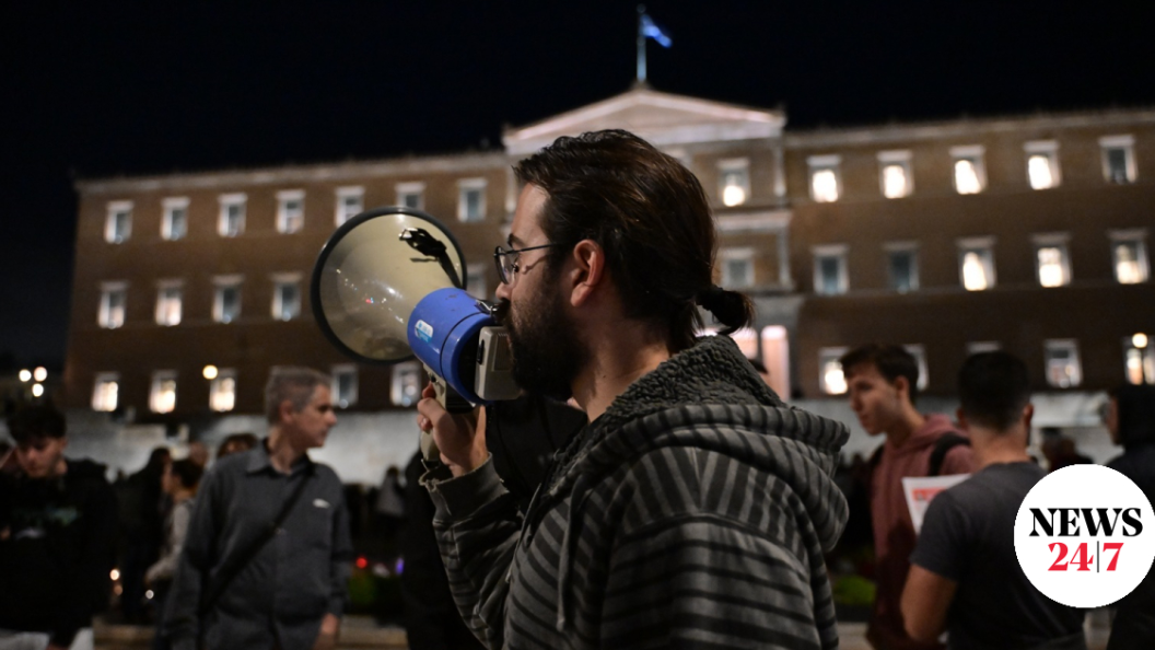 Πολίτες συγκεντρώνονται στην Πλατεία Συντάγματος για να διαμαρτυρηθούν για τη νέα τροπολογία που περνά αυτή τη στιγμή στη Βουλή.