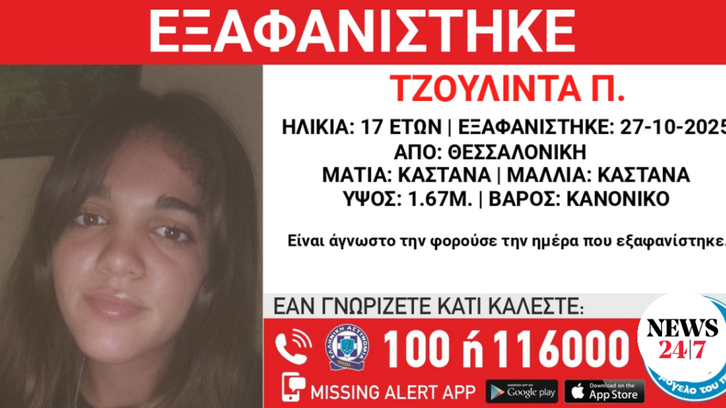 Τα ίχνη της 17χρονης Τζουλίντα Π. χάθηκαν από την περιοχή της Θεσσαλονίκης στις 27 Οκτωβρίου. Η ανακοίνωση που εξέδωσε «Το Χαμόγελο του Παιδιού».