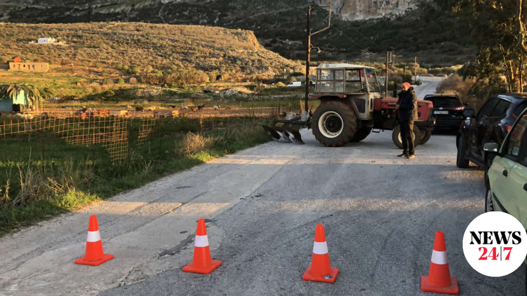 Μπλόκο στην Αμοργό έστησε ένας αγρότης μόνος του, κλείνοντας συμβολικά δρόμο με το τρακτέρ του.