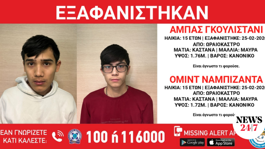 Τα ίχνη των δύο 15χρονων από τον χώρο φιλοξενίας ασυνόδευτων ανηλίκων χάθηκαν την Τετάρτη (25/02). Τι αναφέρει το Χαμόγελο του Παιδιού.