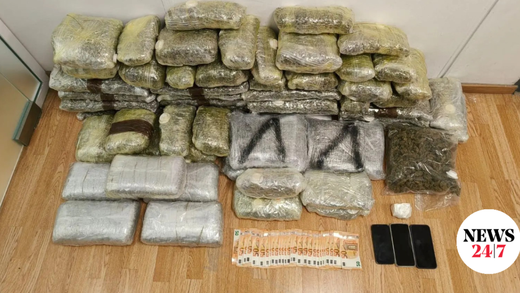 Κατασχέθηκαν 51 κιλά και 10 γραμμάρια ακατέργαστης κάνναβης, 100 γραμμάρια κοκαΐνης και 1.535 ευρώ.