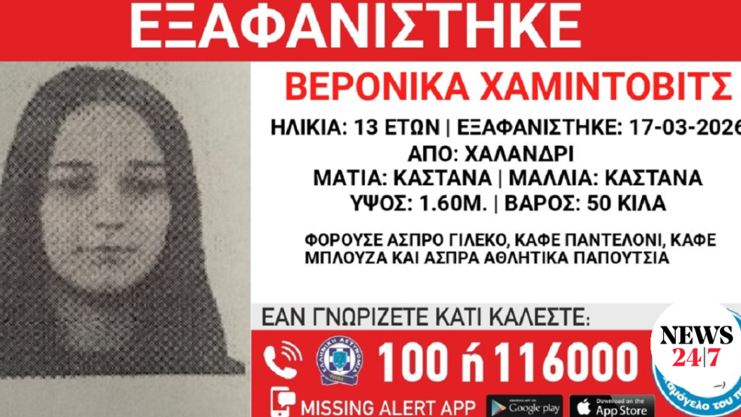 Τα ίχνη της 13χρονης χάθηκαν το απόγευμα της Τρίτης (17/3) από το Χαλάνδρι. Η ανακοίνωση από το “Χαμόγελο του Παιδιού”.