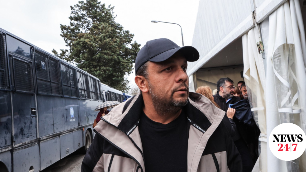 Καταγγελίες από τον Πάνο Ρούτσι, πατέρα θύματος, στη δίκη των Τεμπών, καθώς αστυνομικοί έκατσαν στις παραπάνω θέσεις που τοποθετήθηκαν στην αίθουσα.