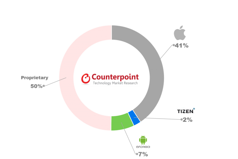 Όπως αναφέρει η μελέτη (Counterpoint: Global Smartwatch Tracker), η Apple εξακολουθεί να κυριαρχεί στην αγορά smartwatches με μερίδιο 41%, σύμφωνα με τα στοιχεία του 2ου τριμήνου. Οι αναλυτές αποδίδουν την πορεία της Apple στη στρατηγική που υιοθέτησε το 4ο τρίμηνο του 2017, ενισχύοντας τα χαρακτηριστικά των smartwatches της σε λειτουργίες. Στο μεταξύ, το μερίδιο της έχουσας τη δεύτερη θέση στην παγκόσμια αγορά Fitbit αυξήθηκε από 8% το 2ο τρίμηνο του 2017 σε 21% την ίδια περίοδο του τρέχοντος έτους. Στην τρίτη θέση βρέθηκε η Fossil, με την Amazfit - ανήκει στην κινεζική OEM Huami, η οποία με τη σειρά της είναι ο κατασκευαστής φορητών προϊόντων για τη Xiaomi - να έπεται με μερίδιο 4%, γεγονός που τη βάζει μεταξύ των μεγαλύτερων κατασκευαστών παγκοσμίως.