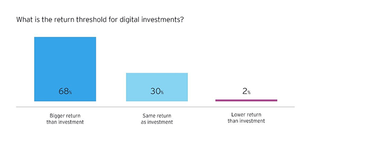Η ενσωμάτωση των ψηφιακών εργαλείων αναφέρεται, επίσης, ως μια θεμελιώδης πρόκληση. Κατά μέσο όρο, οι ερωτηθέντες κατανέμουν σχεδόν το ήμισυ (48%) των επενδύσεων ψηφιακής τεχνολογίας σε εξωτερικούς συνεργάτες (outsourcing), ενώ το 36% των συμμετεχόντων λέει ότι το μεγαλύτερο λειτουργικό εμπόδιο είναι η ενσωμάτωση νέων εργαλείων στις υπάρχουσες λύσεις και συστήματα. Πράγματι, οι ερωτηθέντες αφιερώνουν κατά μέσο όρο μόνο 17% των ψηφιακών τεχνολογικών τους επενδύσεων στη δημιουργία εσωτερικών δυνατοτήτων, τις οποίες αποδίδουν σε θέματα του προσωπικού, στα απαγορευτικά χρονοδιαγράμματα και τα κόστη. Ωστόσο, το 39% των ερωτηθέντων αναγνωρίζει ότι η ανάπτυξη των εσωτερικών δυνατοτήτων και πόρων μπορεί να αποτελέσει μια πολύτιμη ευκαιρία για την προώθηση μιας εσωτερικής κουλτούρας καινοτομίας.