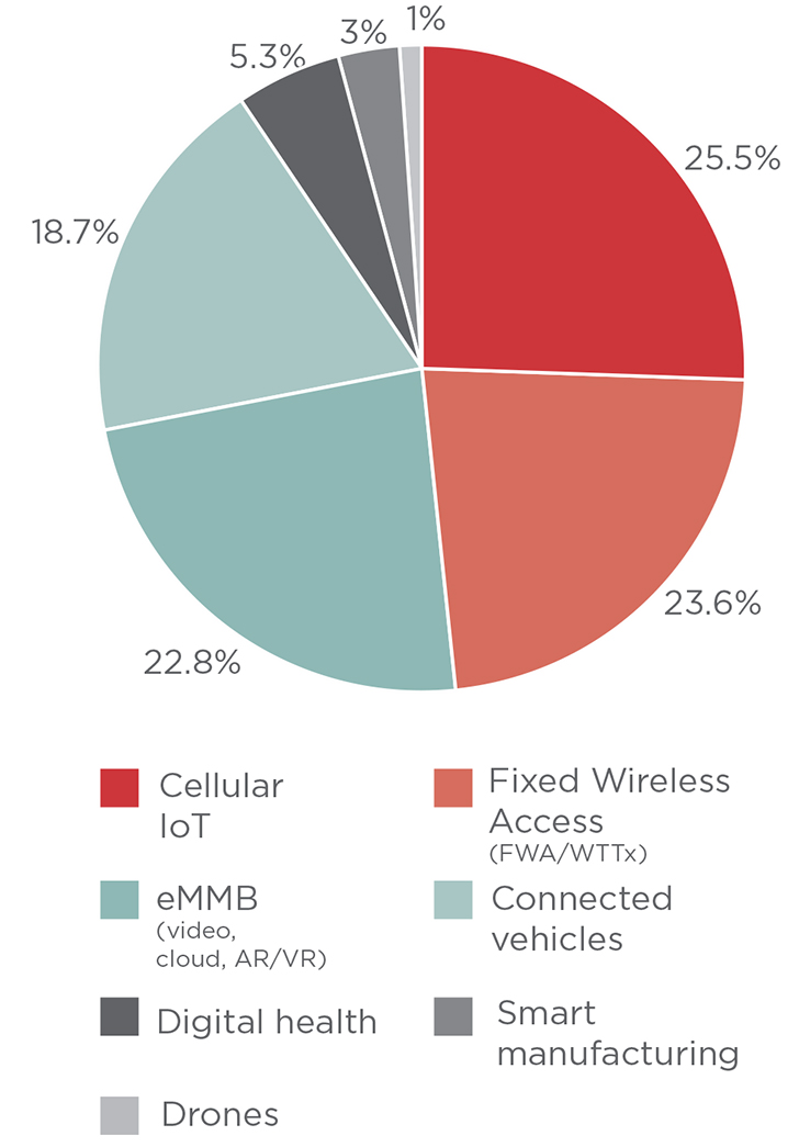 Η έρευνα καταγράφει και τις απόψεις των τηλεπικοινωνιακών εταιρειών σχετικά με πιο πιθανές άμεσες χρήσης της νέας τεχνολογίας. Η πλειοψηφία των στελεχών του κλάδου αναμένει ότι οι υπηρεσίες cellular IoT θα είναι η πιο δημοφιλής περίπτωση χρήσης του 5G, ενώ περίπου το ένα τέταρτο υποδεικνύει τη σταθερή ασύρματη πρόσβαση (FWA) και τη βελτιωμένη κινητή ευρυζωνικότητα (eMBB) ως πιθανές δημοφιλείς υπηρεσίες. Τα συνδεδεμένα οχήματα τοποθετούνται, επίσης, πολύ υψηλά στη λίστα με τις πιο δημοφιλείς χρήσεις των δικτύων νέας γενιάς.