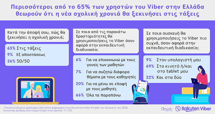 Τα παραπάνω στοιχεία δημοσιοποίησε η Rakuten Viber, η εταιρεία που βρίσκεται πίσω από την εφαρμογή για δωρεάν και εύκολη επικοινωνία. Τα στοιχεία προκύπτουν από παγκόσμια ψηφοφορία της, στην οποία ψήφισαν περίπου 185.000 άνθρωποι. Η ψηφοφορία, που έλαβε χώρα online σε 24 χώρες, ανάμεσα στις οποίες και η Ελλάδα, δείχνει ότι όσοι απάντησαν χρησιμοποιούν την πλατφόρμα, από κοινού με τα εξειδικευμένα εργαλεία τηλεεκπαίδευσης, για να διευκολύνουν την επικοινωνία τους.