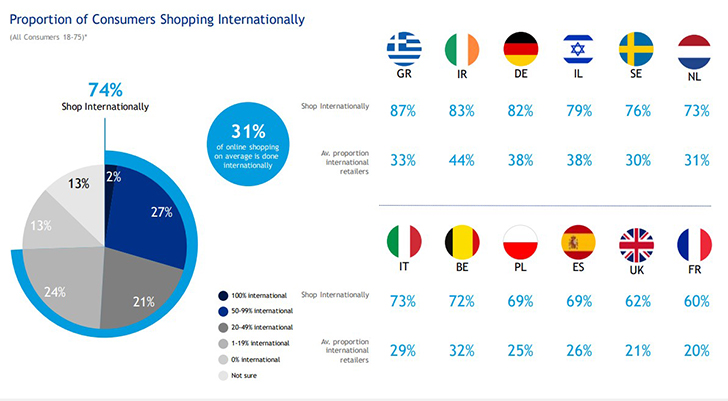 Αν και οι Έλληνες κρατούν τον τίτλο των πιο φανατικών Ευρωπαίων στις online αγορές εκτός συνόρων, μια σημαντική μερίδα καταναλωτών εξακολουθεί να διστάζει να αγοράσει προϊόντα από ξένη χώρα. To 21% των Ελλήνων απαντά ότι ο βασικός λόγος, που δεν αγοράζει από το εξωτερικό, είναι γιατί το marketplace δεν κάνει shipping στην Ελλάδα. Άλλο ένα 31% παραδέχεται ότι έχει αφήσει ημιτελή μια αγορά από site του εξωτερικού, γιατί η μέθοδος πληρωμής του καταστήματος δεν το εξυπηρετούσε.