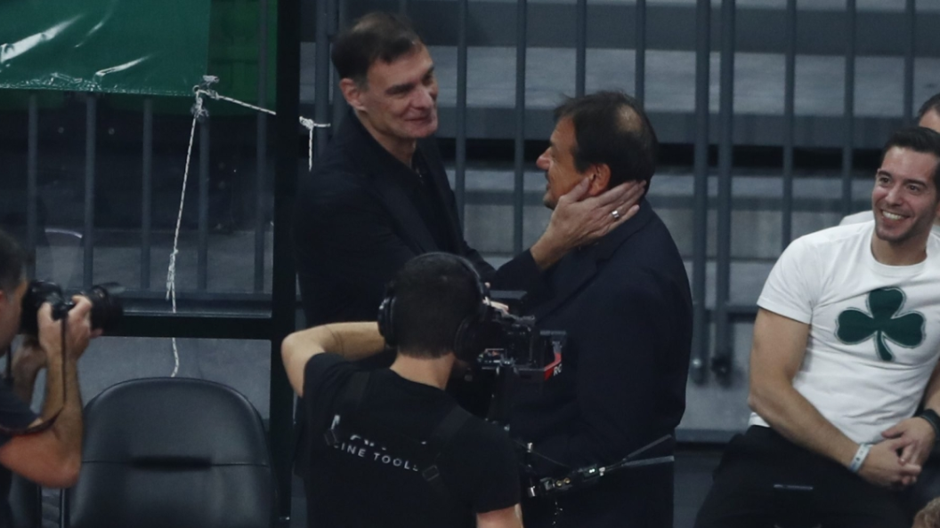 Λίγο πριν το τζάμπολ της αναμέτρησης μεταξύ του Παναθηναϊκού και του Ολυμπιακού, ο Έργκιν Άταμαν και ο Γιώργος Μπαρτζώκας είχαν μια πολύ θερμή χειραψία.