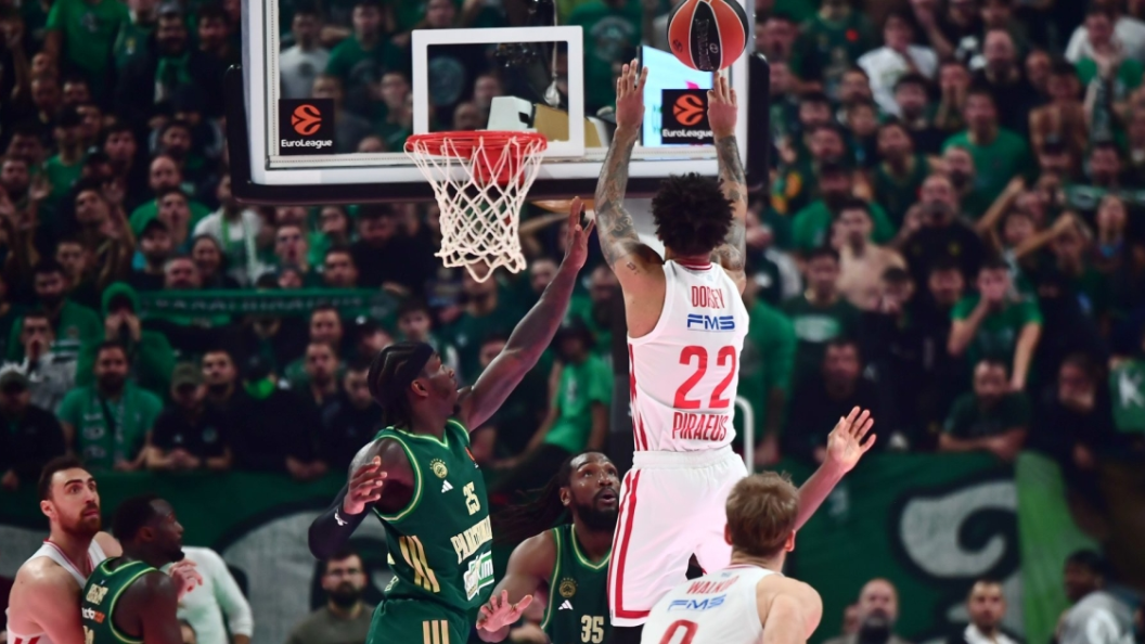 Το εκπληκτικό καλάθι του Ντόρσεϊ, εκτός ισορροπίας που έδωσε… αέρα τεσσάρων πόντων στους «ερυθρόλευκους», 50 δευτερόλεπτα πριν το τέλος.