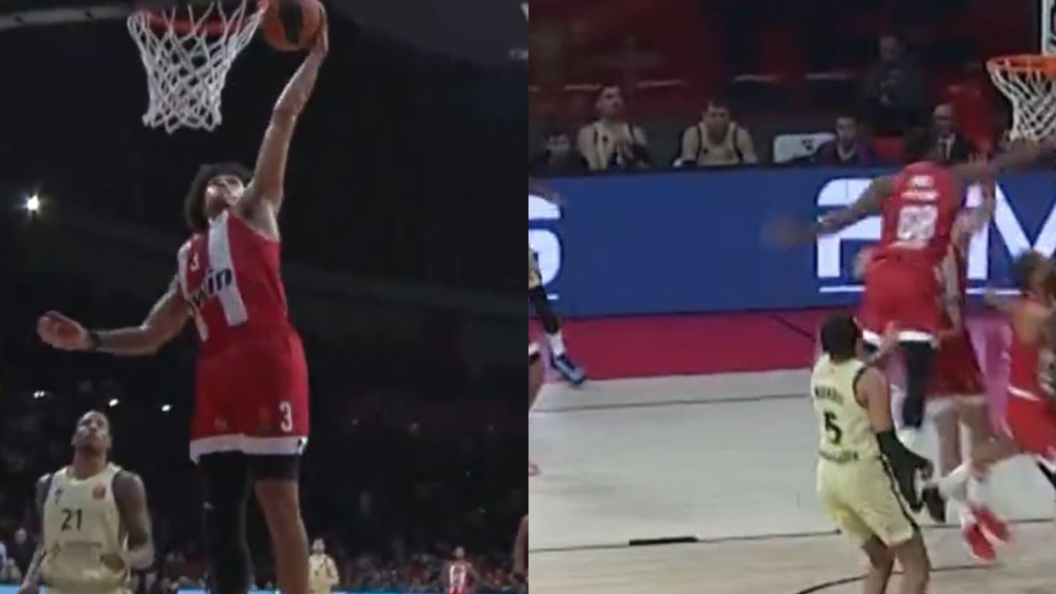 Ο Τάιρικ Τζόουνς με μπλοκ και ο Τάϊσον Γουόρντ με κάρφωμα, χάρισαν δύο από τις πιο εντυπωσιακές φάσεις του Ολυμπιακού στο πρώτο ημίχρονο κόντρα στην Μπαρτσελόνα.