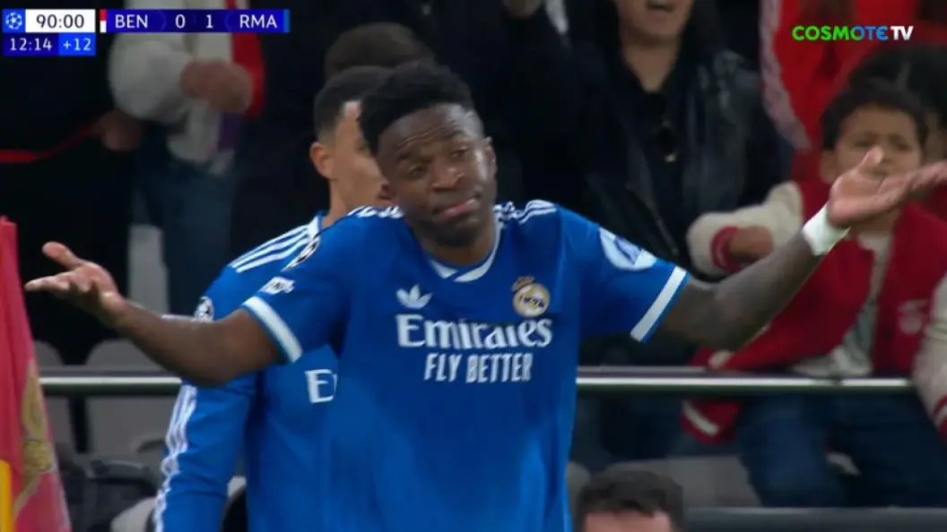 Οπαδοί της Μπενφίκα εκτόξευσαν μπουκάλι προς το μέρος του Βινίσιους Ζούνιορ, λίγο πριν από το φινάλε του αγώνα με τη Ρεάλ Μαδρίτης.