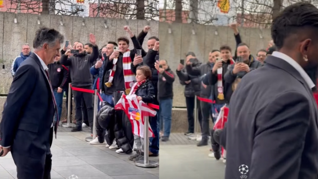 Οπαδοί του Ολυμπιακού μαζεύτηκαν και αποθέωσαν την αποστολή της ομάδας που έφτασε στην γερμανική πόλη. Αποστολή στο Λεβερκούζεν: Δημήτρης Τομαράς.