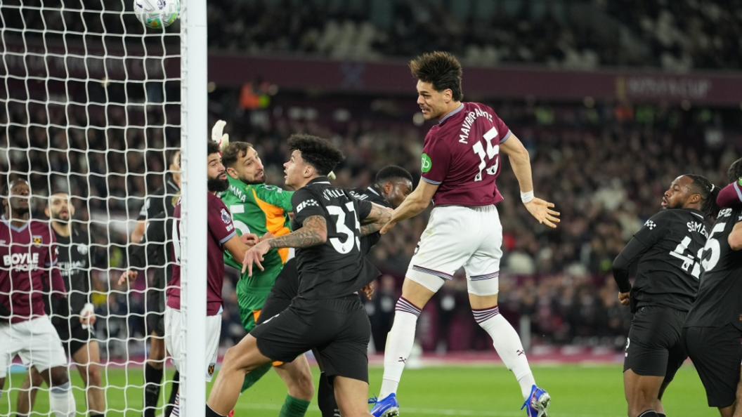 Ο Ντίνος Μαυροπάνος σκόραρε με κεφαλιά ενάντια στη Μάντσεστερ Σίτι, κάνοντας το 1-1 για τη Γουέστ Χαμ.
