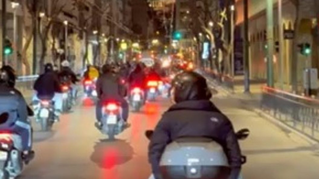 Ενωσίτες κατευθύνονται με μηχανοκίνητη πορεία ώστε να συνοδεύσουν την αποστολή της ΑΕΚ στη Νέα Φιλαδέλφεια.