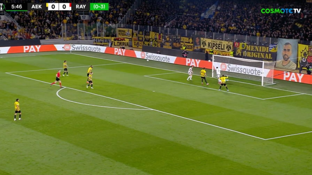 Μια ανάσα από το 0-1 βρέθηκε στο 6' η Ράγιο Βαγιεκάνο μετά το λάθος του Στρακόσα, με τον Ράτσιου να αστοχεί από το ένα μέτρο.