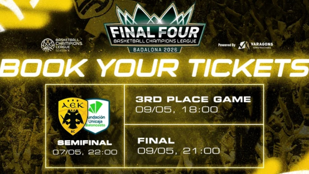 Η ΚΑΕ ΑΕΚ μέσω ενημέρωσής της ανακοίνωση πως ξεκίνησε η διάθεση των εισιτηρίων ενόψει του Final-Four του Basketball Champions League.