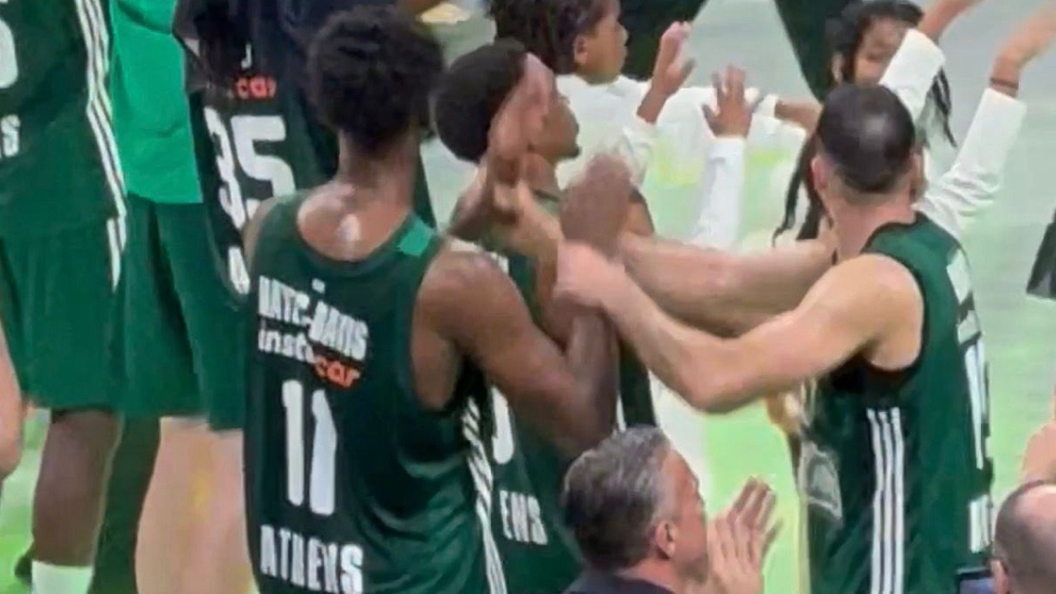 Ο Κώστας Σλούκας λίγα λεπτά μετά το τέλος του αγώνα του Παναθηναϊκού AKTOR με τη Μονακό και την πρόκριση στα playoffs, όπου θα συναντήσει τη Βαλένθια έκανε μάθημα στον Νάιτζελ Χέιζ-Ντέιβις για το «χόρτο μαγικό».