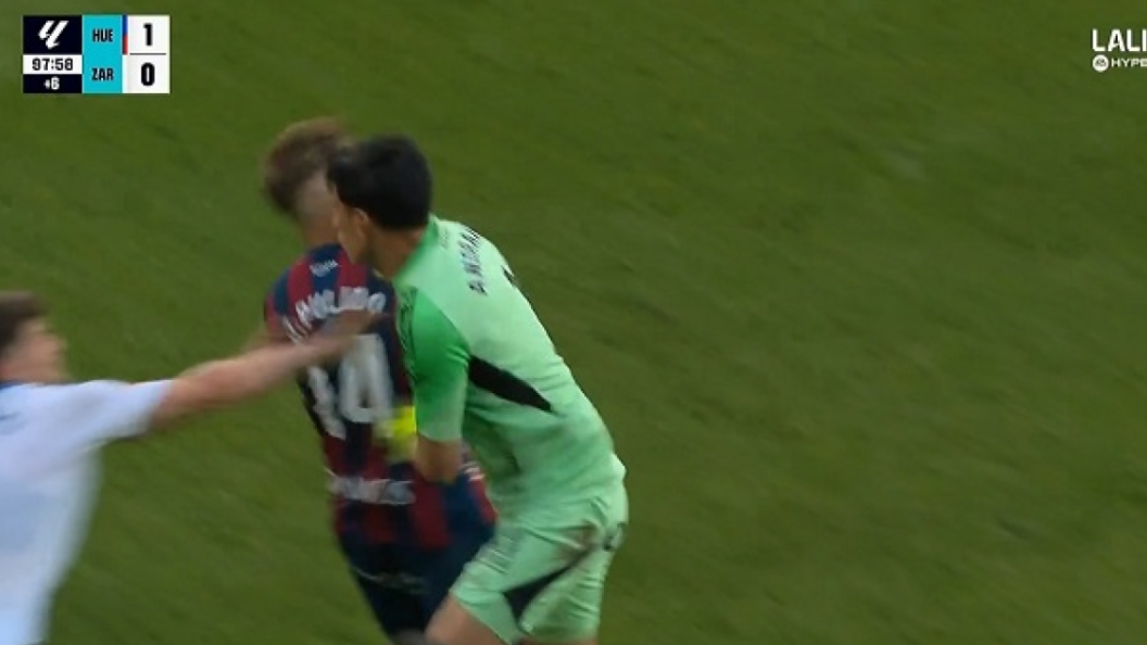 Απίστευτα πράγματα στο ντέρμπι της Ουέσκα με τη Σαραγόσα, με τον τερματοφύλακα της δεύτερης να σωριάζει αντίπαλο με μπουνιά.