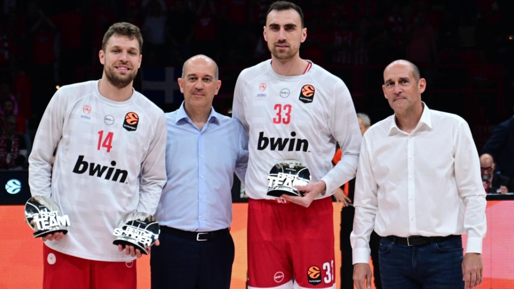 Ο Παναγιώτης και ο Γιώργος Αγγελόπουλος βράβευσαν τους Σάσα Βεζένκοβ και Νίκολα Μιλουτίνοφ για τις τιμητικές τους διακρίσεις στη EuroLeague.