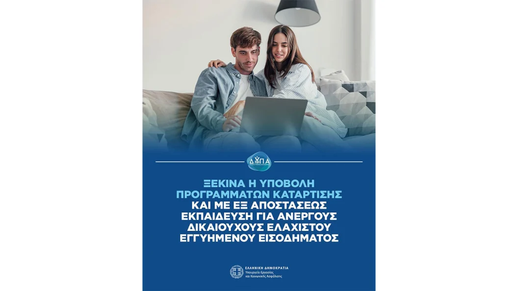 Ξεκίνησε η υποβολή προγραμμάτων κατάρτισης και με εξ αποστάσεως εκπαίδευση για ανέργους δικαιούχους Ελάχιστου Εγγυημένου Εισοδήματος