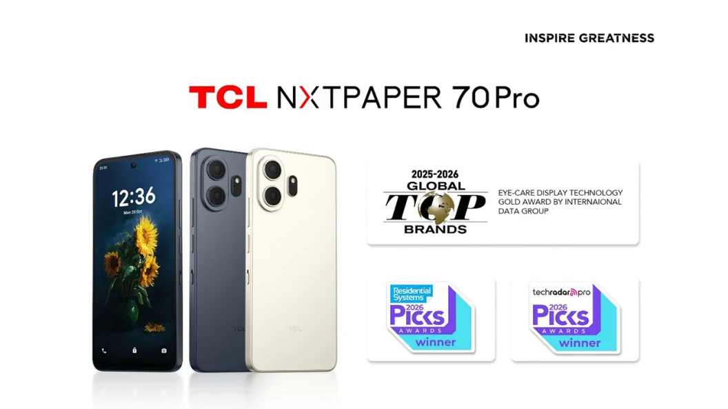 Η TCL ανακοινώνει με υπερηφάνεια ότι το smartphone TCL NXTPAPER 70 Pro απέσπασε το κορυφαίο χρυσό βραβείο Eye-Care Display Technology στην τελετή απονομής