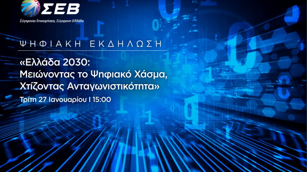 Ψηφιακή Εκδήλωση: «Ελλάδα 2030: Μειώνοντας το Ψηφιακό Χάσμα, Χτίζοντας Ανταγωνιστικότητα»