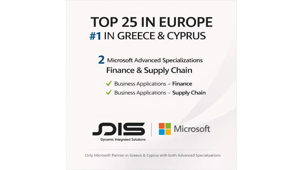 Η μοναδική εταιρεία σε Ελλάδα και Κύπρο με δύο Microsoft Advanced Specializations σε Finance & Supply Chain