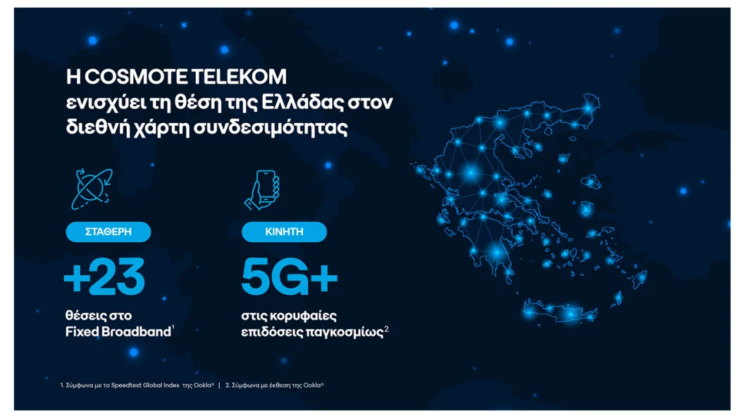 Όλο και υψηλότερα ανεβαίνει η Ελλάδα στον διεθνή χάρτη συνδεσιμότητας, κυρίως χάρη στις επενδύσεις της COSMOTE TELEKOM σε δίκτυα νέας γενιάς σταθερής και