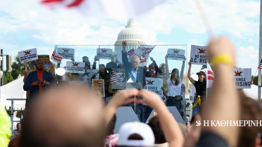 Με παρατεταμένα χειροκροτήματα υποδέχθηκαν οι διαδηλωτές στην Ουάσιγκτον τον γερουσιαστή Μπέρνι Σάντερς, ο οποίος ανέβηκε στη σκηνή του μεγάλου συλλαλητηρίου «No Kings» για να καλέσει σε υπεράσπιση της δημοκρατίας.